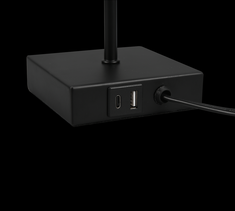 Trio R51061032 stolní lampa Ole 1x25W | E27 - tahový spínač, USB, černá