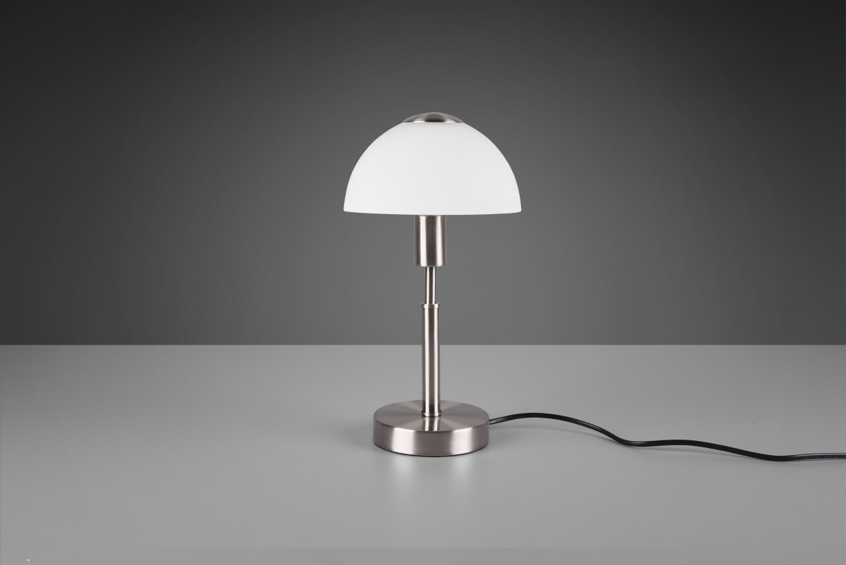 Pokud hledáte praktickou stolní lampičku, která bude mít nadčasový design, pak je pro Vás Trio TR59041007 Don tou pravou. Tato lampa je moderních elegantních tvarů, avšak potěší i milovníky minimalismu. Výborně vynikne zejména v ložnici nebo v obývacím pokoji při osvětlování tmavých koutů místnosti. Tělo tohoto svítidla je vyrobeno z matného niklu a stínidlo je vyrobeno z bílého skla.