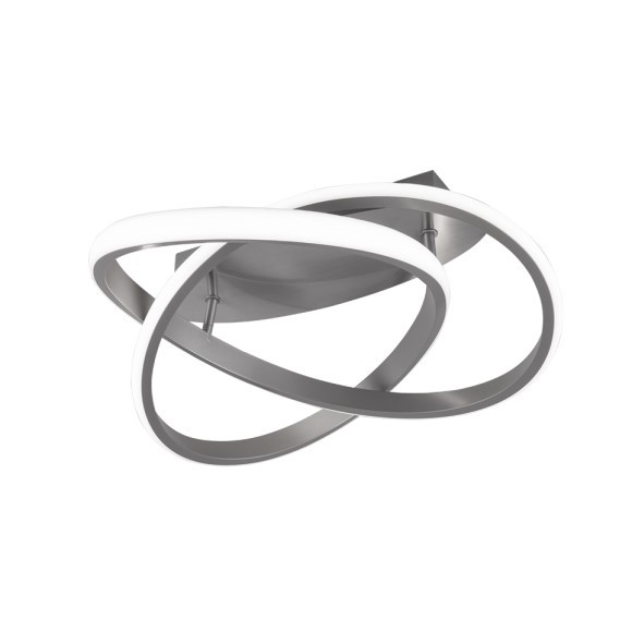 Z tohoto přisazeného stropního svítidla COURSE se vám snadno může zamotat hlava úžasem. Jedná se o designové svítidlo, jehož kovová konstrukce v odstínu niklu vytváří spletité obrace vyzařující světlo, které lze v několika krocích stmívat. Můžete tak navodit atmosféru v místnosti přesně podle svých představ. Na výšku měří 180 mm a dosahuje průměru 450 mm, nemá tedy vysoké nároky na prostor či výšku stropů.