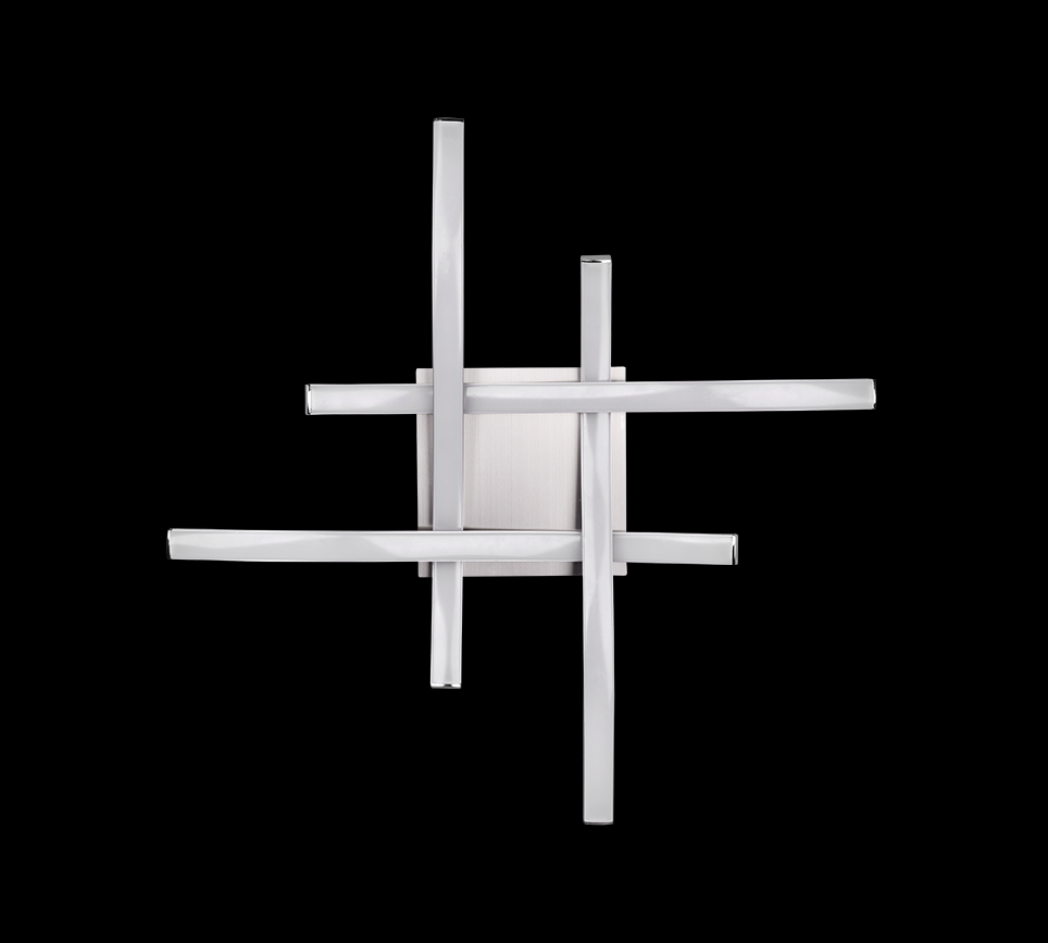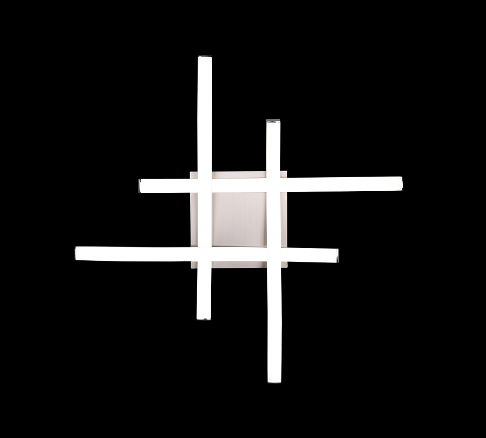 Toto přisazené stropní svítidlo z řady ROUTE je zhmotněním ryzího minimalismu v podobě čtyř zvlněných linií tvořících mříž. Ty jsou zhotoveny z kovového materiálu v odstínu niklu. Na šířku dosahují 460 mm a na výšku 70 mm, snadno tedy budou ozdobou místností o různých rozměrech.