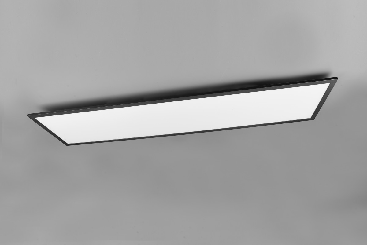 Takovým chameleonem mezi světly je toto přisazené stropní svítidlo GAMMA z kolekce německé společnosti TRIO. Jedná se o obdélník s kovovým okrajem zabarveným do matně černé, který na šířku dosahuje 1195 mm. Může tedy díky svému vzhledu jednoduše splynout se stropem v chodbě nebo pracovně.