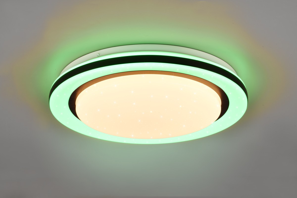 Trio R67244000 LED přisazené stropní svítidlo Cartida 1x17W | 2000lm | 2700-6000K + RGB | IP20 - plynulé nastavení barvy světla, dálkové ovládání, oddělené spínaní světelných zdrojů, hvězdný efekt, bílá
