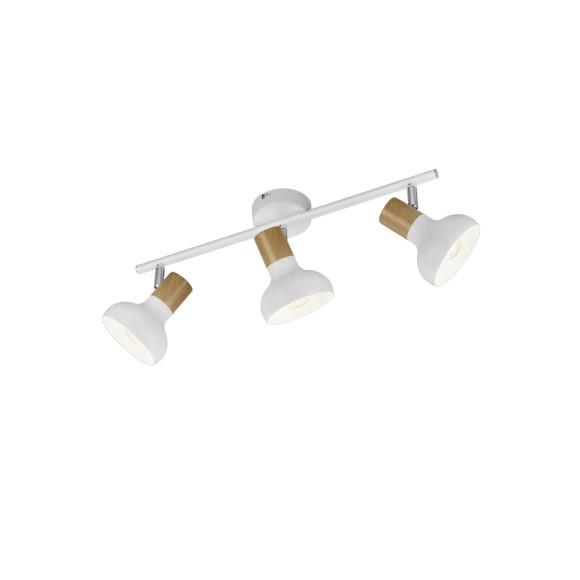 Toto bodové světlo je flexibilní a lze jej využít samostatně, v kombinaci s jinými svítidly, jako hlavní zdroj osvětlení nebo jako cílené zvýrazňující osvětlení pro specifické oblasti. Dřevěné detaily dodávají interiéru hřejivý pocit, zatímco kombinace bílého matného kovu a dřevěného vzhledu vytváří útulný charakter, který se snadno integruje do různých stylů interiéru.