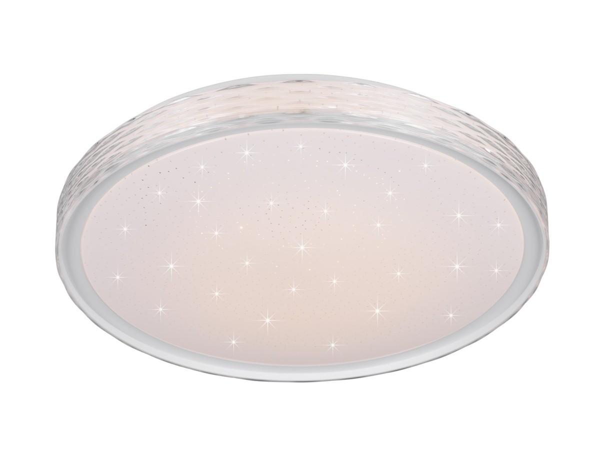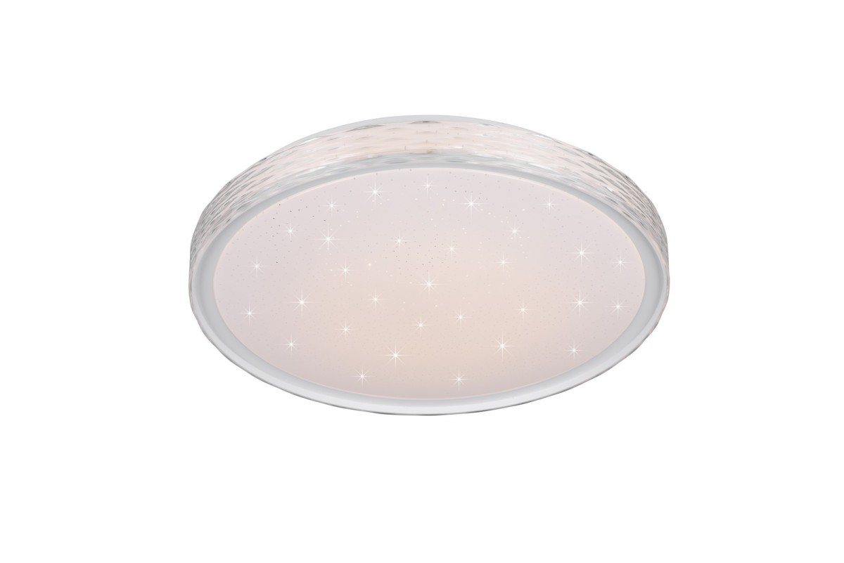 Bílý difuzor s hvězdným efektem vytváří jemný třpyt a dodává prostoru jedinečný charakter. Výbava zahrnuje také paměťovou funkci, noční světlo, časovač a možnost ovládání přes klasický vypínač (Switch Dimmer). Kvalitu výrobku podtrhuje záruka 5 let.