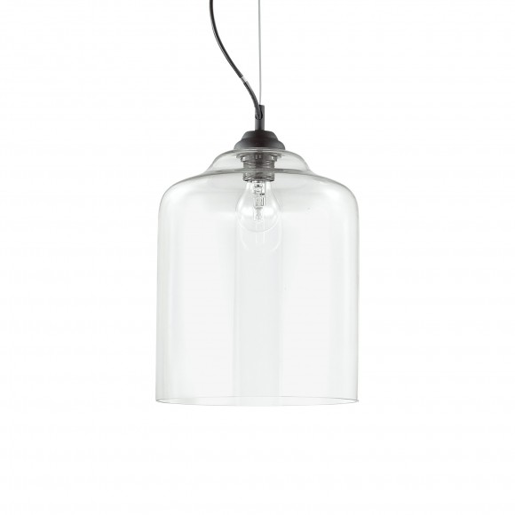 Pevný kovový rám, černě lakovaný a ručně foukané a tvarované stínítko z čirého nebo kouřového skla. Přívodní kabel je krytý látkou.