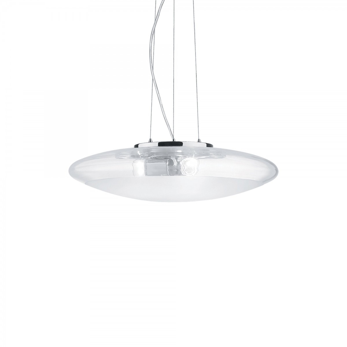 „Závěsný skleněný lustr osvítí nejen jídelní stůl - hodí se i do jiných místností bytu či domu. Vhodný do prostorů s vyššími stropy.“