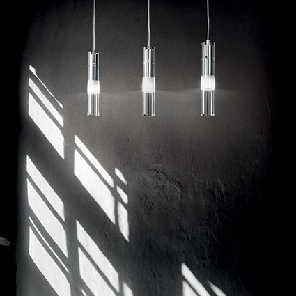 Elegantní svítidlo do moderního interieru. Kovový rám a objímka v chromové úpravě. Objímka je umístěna do stínítka ve formě trubice, z čirého pyrexového skla, které je v centrální části pískované.…
