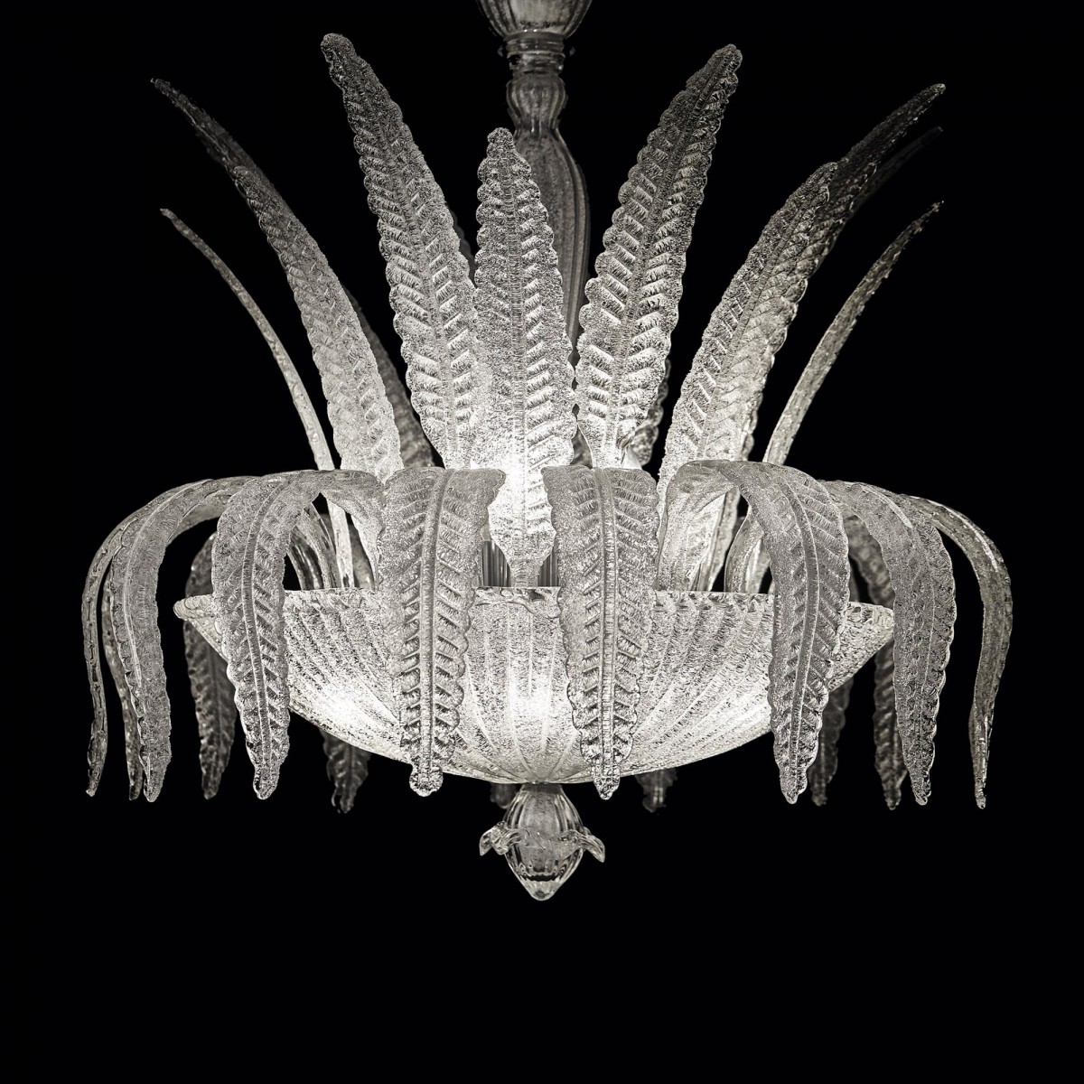 Luxusní šperk ve Vašem bydlení! Nádherná ledová fantazie. Chromovaný kovový rám. Tělo, difuzery a dekorativní prvky z průhledného skla, ručně tvarované a dokončené pískováním. Závěsný řetěz je krytý…