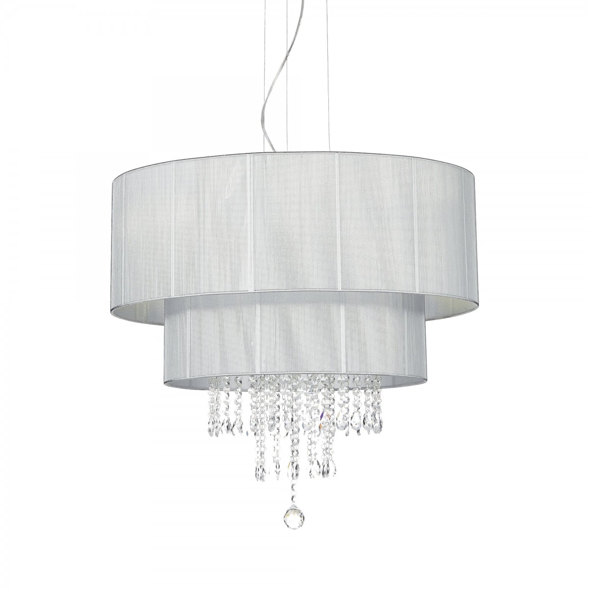 Luxusní komplexní osvětlení bytu nebo domu. Svítidlo má odolný kovový rám v chromové úpravě a jedinečné stínítko z PVC folie s kovovými odlesky, které je navíc omotáno bílou nití a doplněné o…